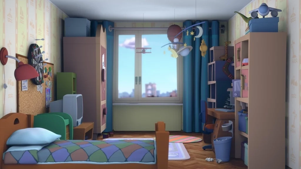 Место, которое чаще всего показывают в мультсериале. Это личная комната ДимДимыча в которой он играет, делает уроки и общается с Фиксиками. Из примечательной мебели в его комнате есть:
